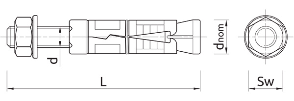 • Трёхсегментная распорная втулка с максимальным распором обеспечивает оптимальную нагрузку и безопасность использования анкера в любом основании