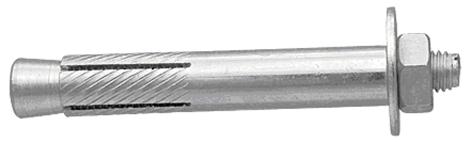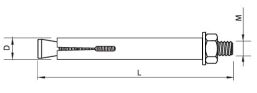 Характеристики: стержень с резьбой и конусообразным хвостовиком, цилиндрической подвижной муфтой с продольными прорезями, шайбой и шестигранной гайкой. При завинчивании гайки муфта наползает на хвостовик, и происходит распирание. Головка имеет прямой шлиц.