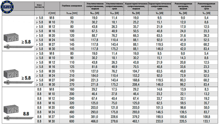 Согласно данным и характеристикам Европейских технических сертификатов (ETA), в вашем распоряжении один из лучших химических анкеров на европейском рынке с двойным сертификатом.