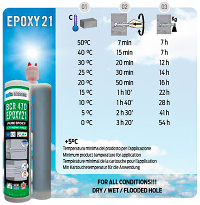 Применение: Высокоадгезионный эпоксидный химический анкер Bossong для креплений, работающих в тяжелых условиях, для использования в различных основных материалах, таких как бетон, кирпичная кладка и дерево. Двойная квалификация CE при сейсмических работах C2.