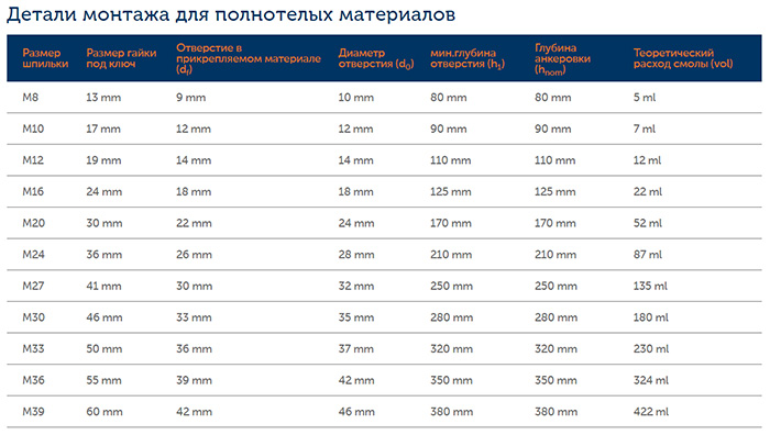 Расход химического состава зависит от материала основания и геометрических характеристик анкерного крепления. В соответствии с регламентом на монтаж химических анкеров, установка считается выполненной правильно, если излишки химического состава выступили из отверстия. Расчет расходования химического состава инжекционной массы производится по соответствующим формулам и зависит от степени пористости материала.