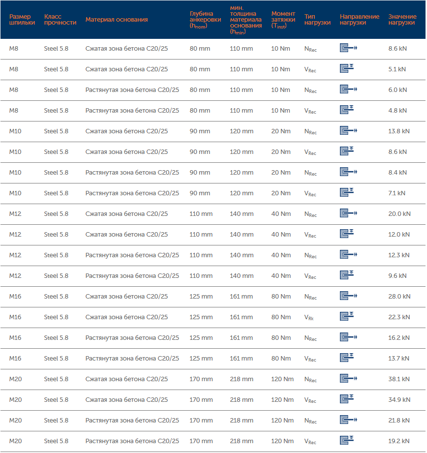 - Условия, касающиеся использования подходящего материала и покрытий шпилек и арматуры: ZP для сухих помещений и временного уличного использования; HGD/MG и A2 для сухих и влажных помещений, на улице только в сельской местности; A4 для помещений, на улице и индустриального использования ; HCR для особо агрессивных условий.
