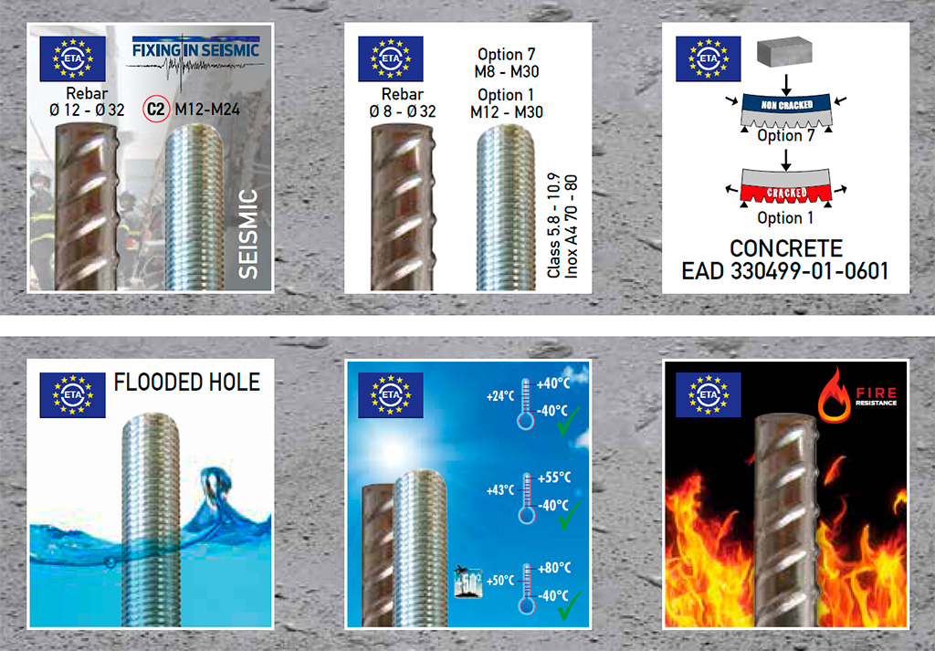 Согласно данным и характеристикам Европейских технических сертификатов (ETA), в вашем распоряжении один из лучших химических анкеров на европейском рынке с двойным сертификатом.