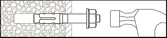 Забейте анкер с помощью молотка или перфоратора со специальной насадкой (h nom)