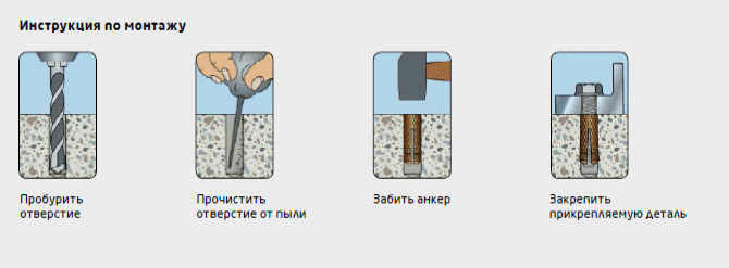 Характеристики: анкер имеет шероховатую поверхность, что позволяет избежать прокручивания анкера при монтаже. При закручивании шпильки(болта), гильза (с внутренней частью конической формы) расширяется и прижимается к поверхности отверстия.