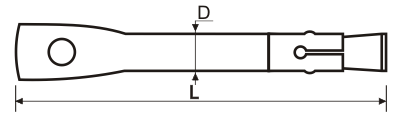 Характеристики: стальной стержень с цилиндрической подвижной муфтой в виде пояска, конусообразным хвостовиком и ушком с отверстием диаметром 6,3мм. Рекомендуемая рабочая нагрузка не должна превышать 25% от максимальной (нагрузки на вырывание).