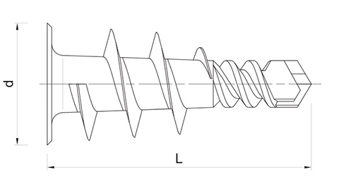 | Обозначение | Диаметр дюбеля, [мм] | Длина дюбеля, [мм] | Мин. вырыв. сила (в ГКЛ), кН | Рекомендуемый диаметр шурупа, [мм] |