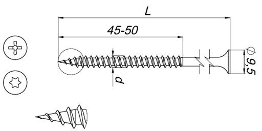 Материал: шурупы из калённой углеродистой стали, защищены высочайшего класса противокоррозионным слоем, гарантируют устойчивость 15 циклей Kesternicha.