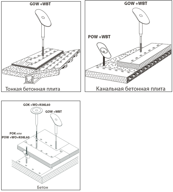 Применение: с дюбелем типа GOW создает телескопное крепление гидро- и термоизоляции на плоской кровли из бетона толщиной свыше 25 мм.
