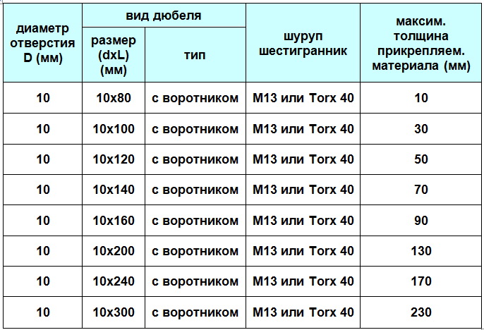 Характеристики дюбеля: