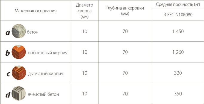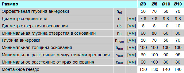 ● Одинаковая глубина анкеровки во всех основаниях, 70 мм обозначенная глубина посадки.