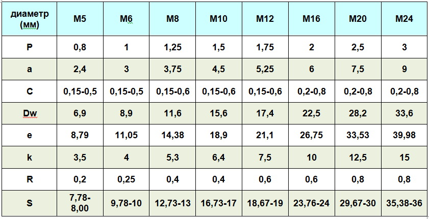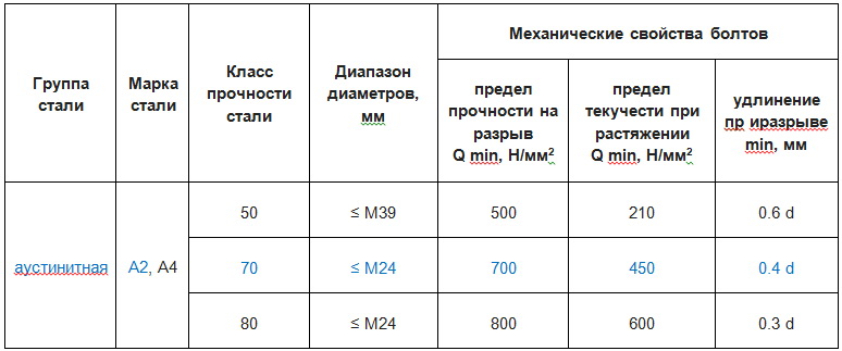 Характеристики: Сталь A2 (AISI 304 = 1.4301 = 08Х18Н10) — нетоксичная, немагнитная, не закаливаемая, устойчивая к коррозии. Сохраняет прочностные свойства в диапазоне температур: от низких (-2000С) до высоких (+4250С).  Резьба болта метрическая, расположенная по всей длине крепежного элемента.