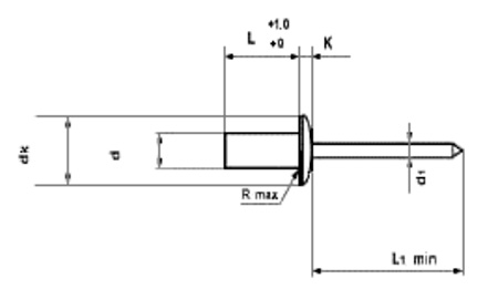 Основные характеристики заклепки глухой A2 с нержавеющей стали и стандартным бортом:
