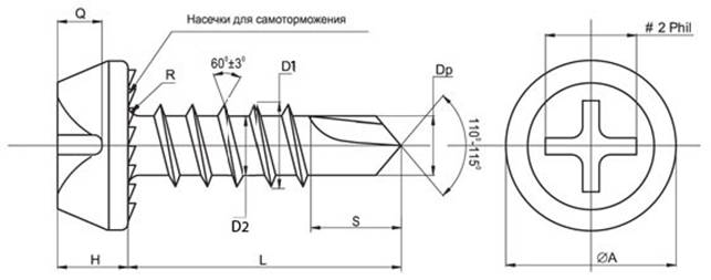 Характеристики: наконечник сверло, позволяет просверливать металл до 2 мм без предварительного сверления. Стопорные насечки под головкой самореза предотвращает самопроизвольное откручивание шурупа, шлиц Phillips (PH) №2.