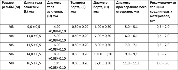 Характеристики: производятся методом холодного формования. Они просты в установке и обеспечивают высокое сопротивление выдергивающим нагрузкам и вибрации. Внутренняя резьба позволяет использовать обычные болты, винты, шпильки. 80% креплений могут быть выполнены при помощи гаечных заклепок. Широкий диапазон диаметров, длин и материалов.