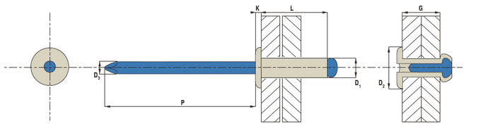 Характеристики: вытяжная заклепка со стандартным бортиком – наиболее универсальная вытяжная заклепка для всестороннего применения, состоит из гильзы и стержня. Отдельные части заклепки могут быть выполнены из разных материалов, или из комбинации материалов.