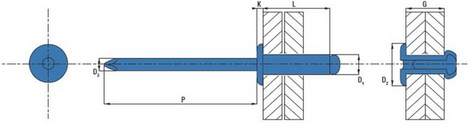 Характеристики: вытяжная заклепка со стандартным бортиком – наиболее универсальная вытяжная заклепка для всестороннего применения, состоит из гильзы и стержня. Отдельные части заклепки могут быть выполнены из разных материалов, или из комбинации материалов.