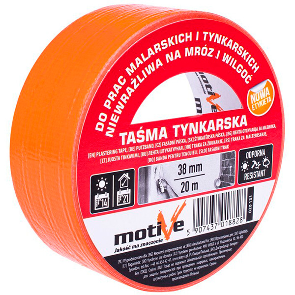 Лента армированная клейкая штукатурная 38ммх20м Motive (ПОЛЬША): Прочность и Надежность для Идеальных Штукатурных Работ