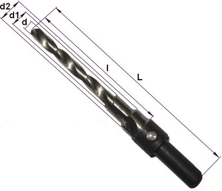 Характеристики: сверло представляет собой трехступенчатую конструкцию, состоящую из державки (адаптера) и сменного основного сверла. Благодаря крестообразной подточке режущей части обеспечивается точное центрирование сверла.